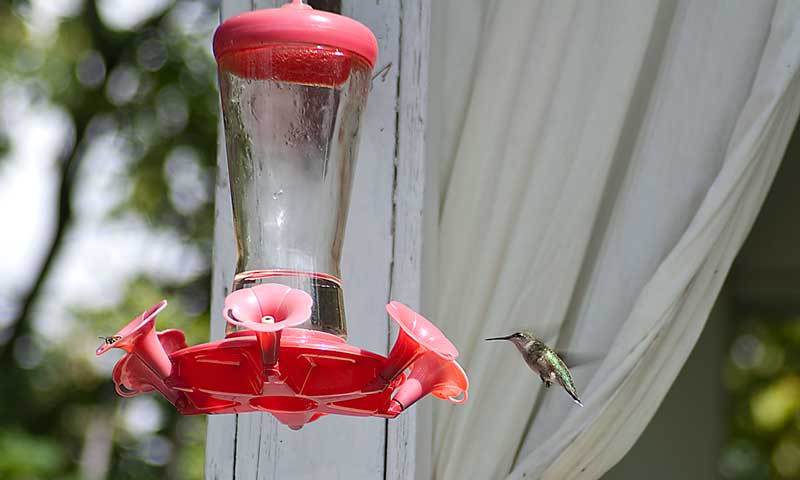 I spent some time out at the Haselwood Inn Bed & Breakfast this weekend, where with a little help from a hummingbird feeder, some pretty nice flowers, and thirteen acres of natural landscape, the ruby-throated hummingbirds are prevalent. Apparently last weekend there was a migration through the property. What is it about these tiny birds that so captivates us and what is the biology and physics behind it?
