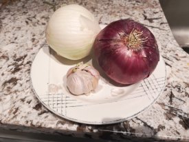 Allium species are plants like onion, garlic, leek, and chives. In fairly low quantities these plants can basically destroy the animal’s red blood cells–red blood cells carry oxygen around our bodies and remove carbon dioxide from body cells and carry it to the lungs where it can expelled. The responsible components are organosulfoxides and, unfortunately, none of our usual treatments like cooking, drying, and processing do not eliminate the toxic effects. Symptoms may not appear for several days, but would include vomiting, diarrhea, abdominal pain, loss of appetite, and depression. Other symptoms will follow. Death is a very real possibility, so seek professional help immediately.